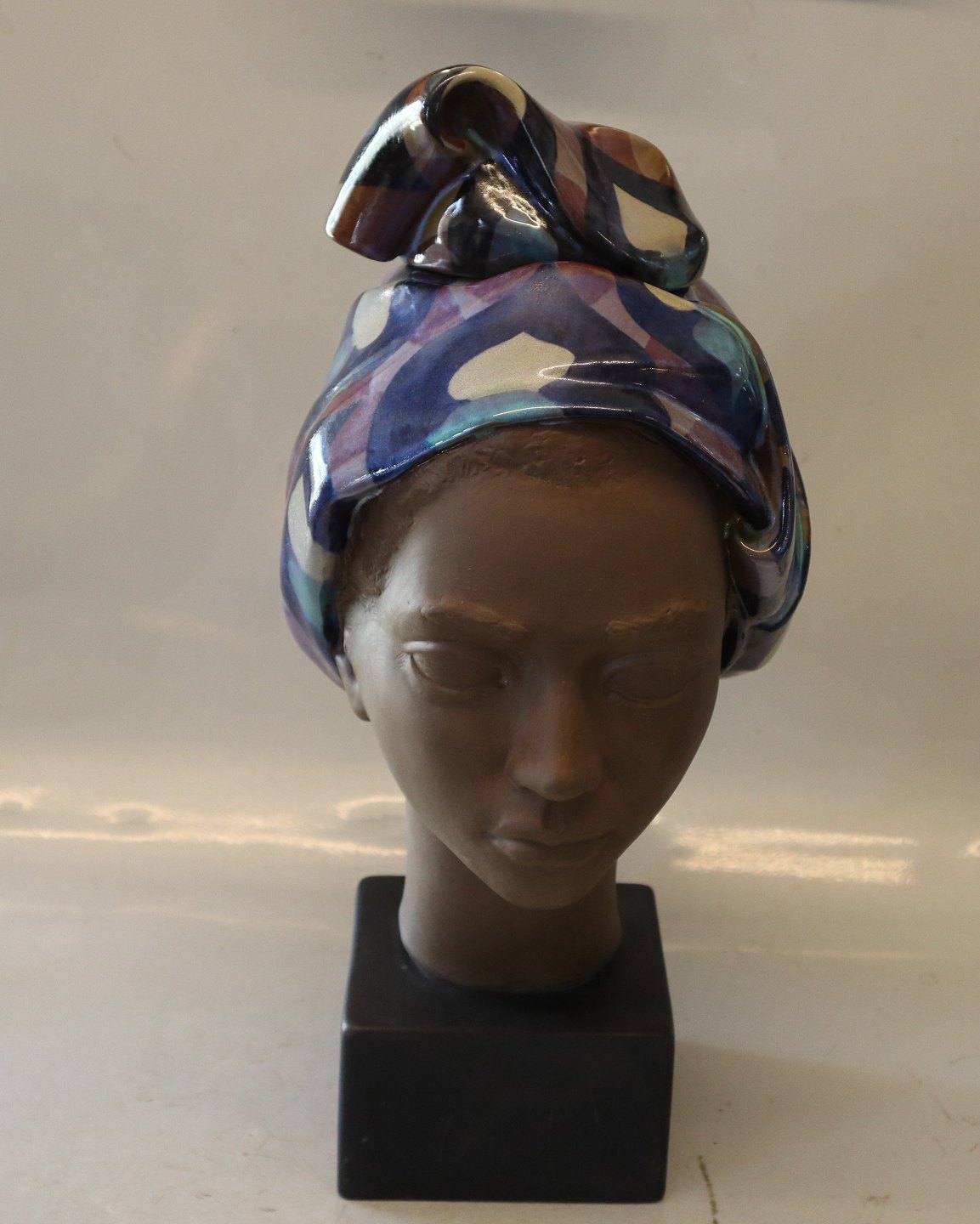 Kongelig Dansk Stentøj 3139-250 Aluminia Kvinde hoved med låg 43 cm Margrethe