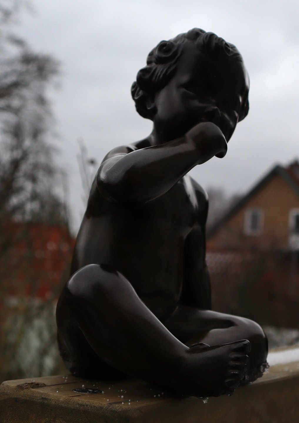 Just A Disko D 2323 Dreng sider og sutter på sin tommelfinger 19.5 cm Bronzeret statuette