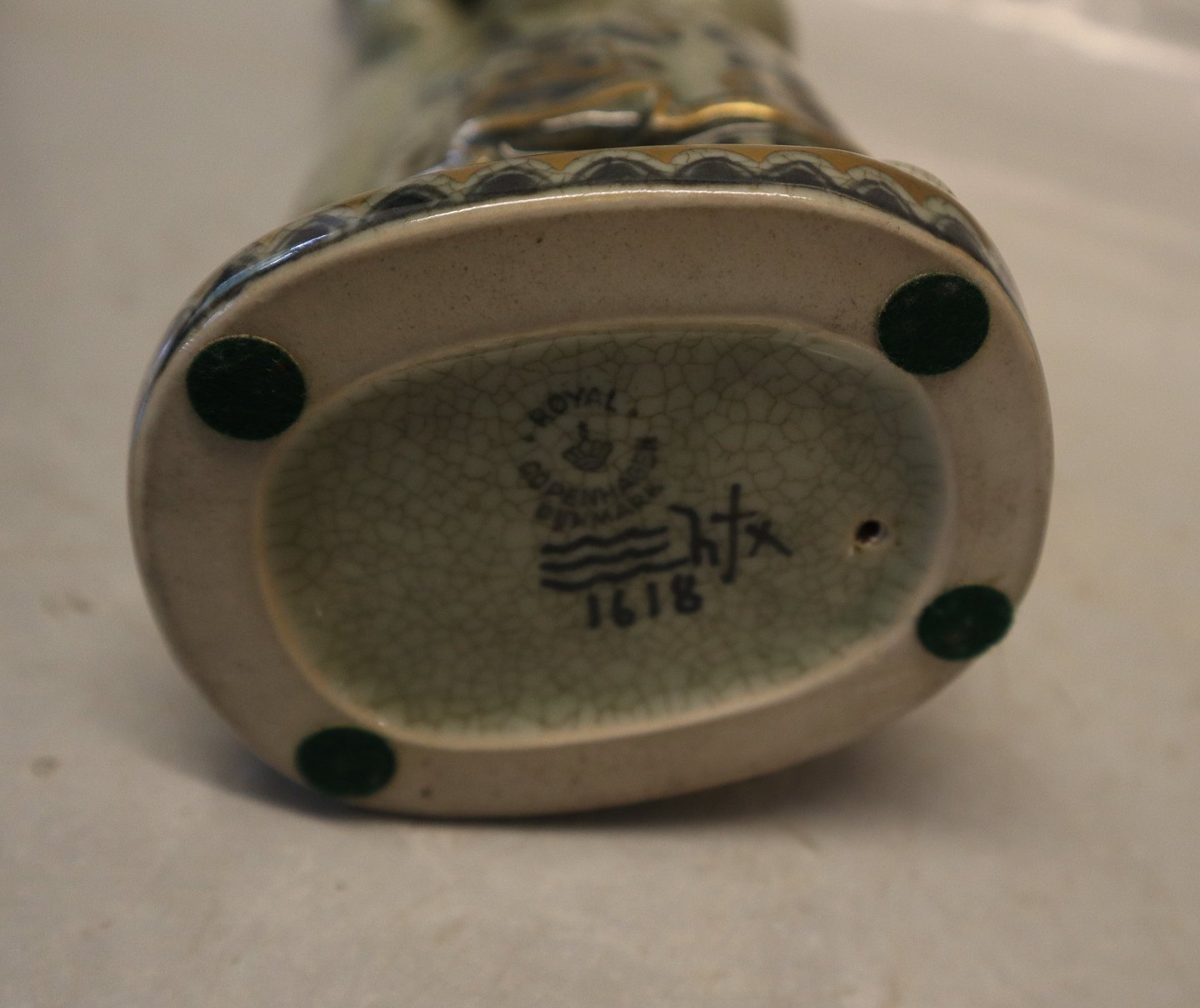 Beskrivelse: Kgl. Grøn Craquelé figur fra Royal Copenhagen I hel og fin stand