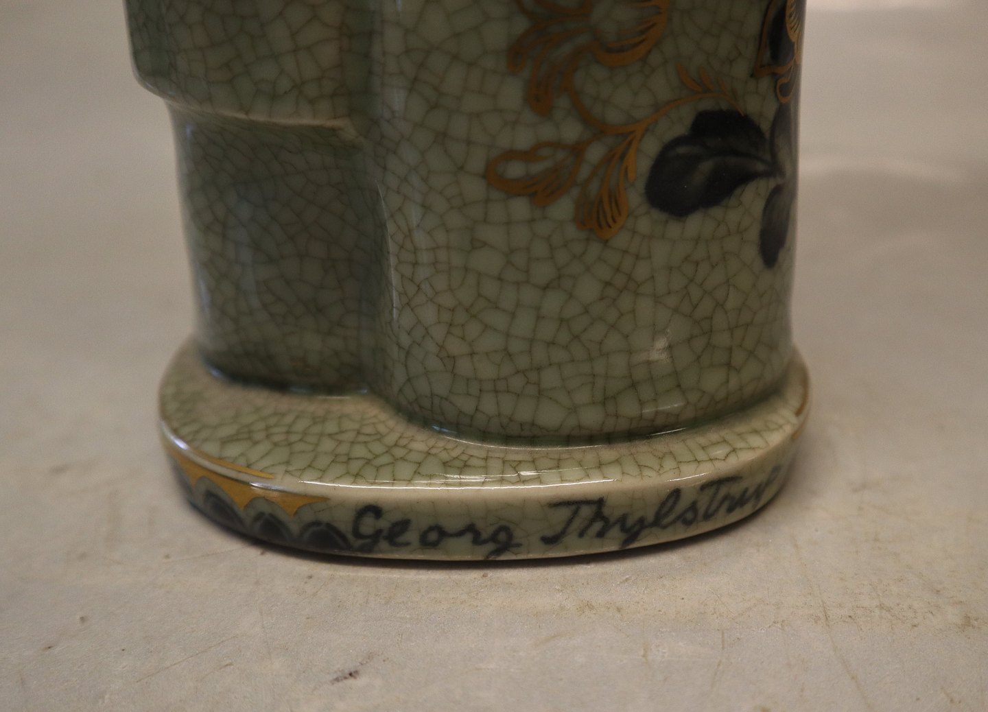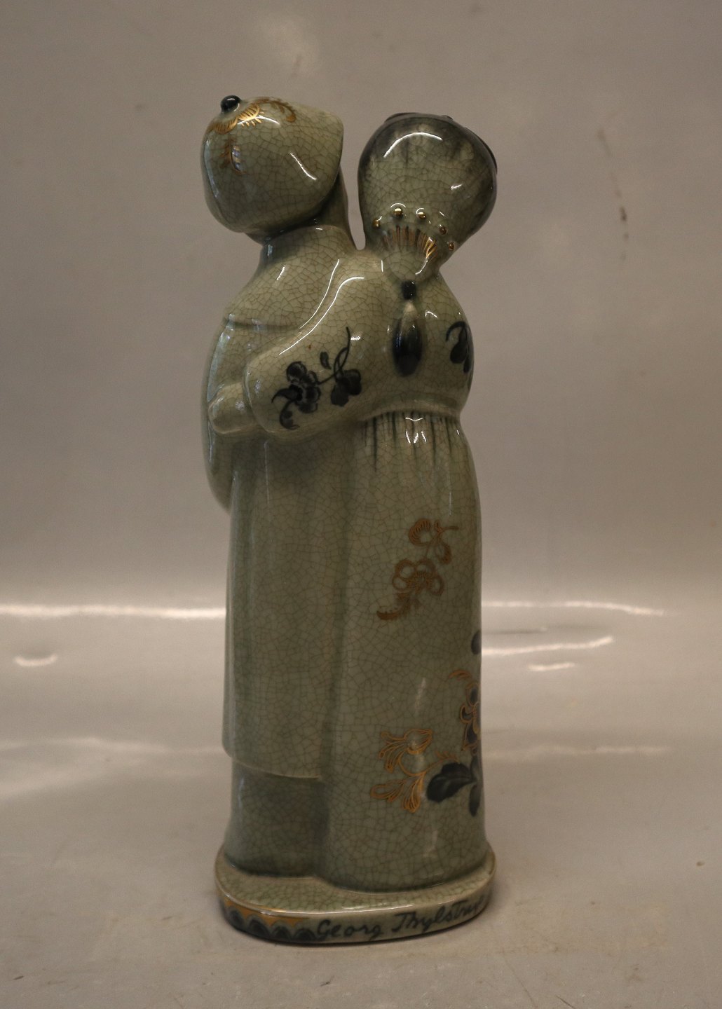 1618 Kinesisk par med krukke 25 cm Georg Thylstrup Grøn Craquelé