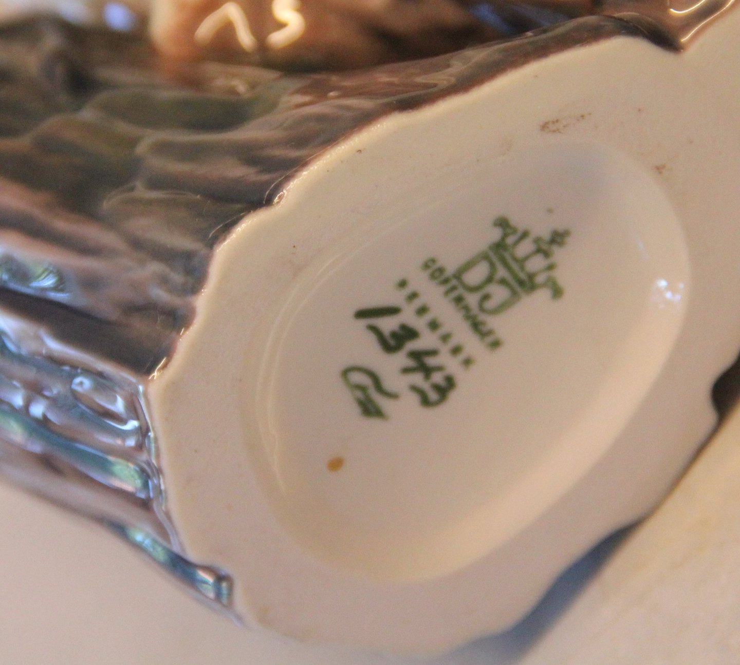 Beskrivelse: Dahl Jensen fugl 1343 Flagspætte 15 cm (DJ). Mærket med kongelig krone og DJ Copenhagen i hel og fin stand.