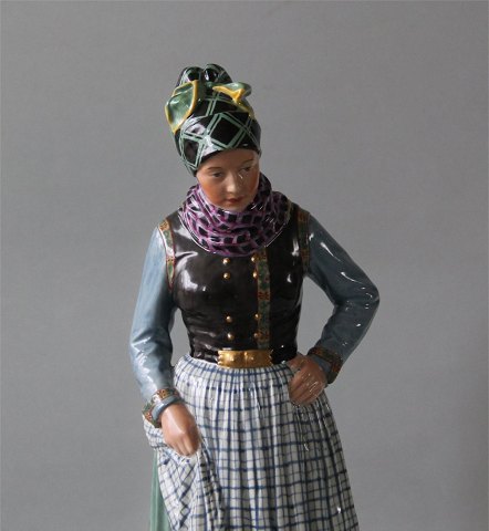 Beskrivelse: Kgl. figur fra Royal Copenhagen af Carl Martin-Hansen 12138 Kgl. Nationaldragt: Blåvandshug 31 cm Egnsfigur I hel og fin stand