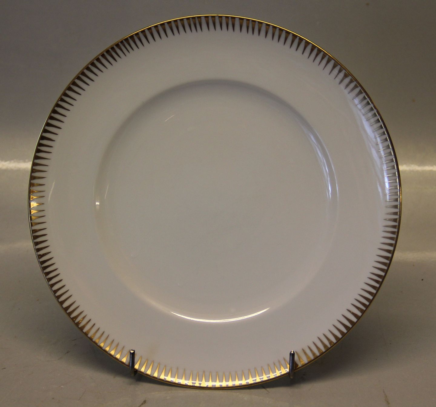 026 Frokost tallerkener 21 cm (326) Luna Bing & Grøndahl B&G : Hvidt porcelæn, med pindemønster guldkant, form 601 Helsingør I fin og hel stand.