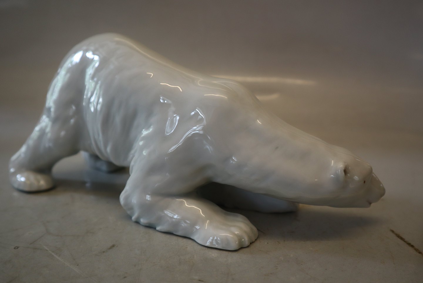 : Heubach Isbjørn dukker sig 10 x 23 cm Tysk porcelæn i fin og hel stand