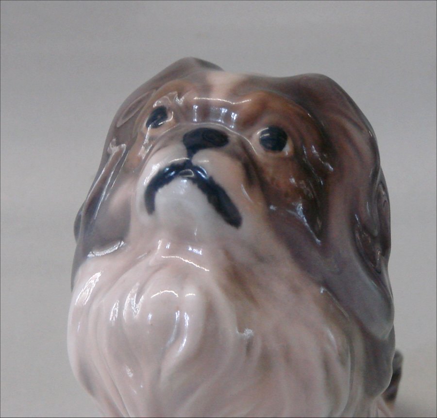 Beskrivelse: Dahl Jensen hund. 1003 Pekingeser (DJ) 13 cm 2. Mærket med kongelig krone og DJ Copenhagen i hel og fin stand.