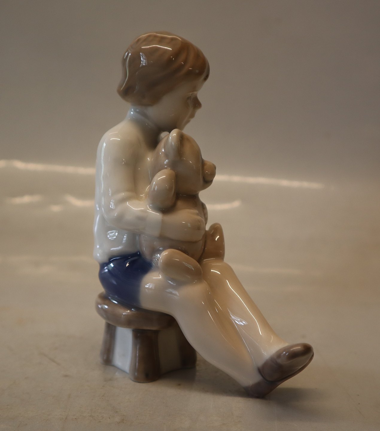 Beskrivelse: 5652 Kgl. Dreng med bamse 11.5 cm Sterett Kelsey Porcelæn fra Royal Copenhagen I hel og fin stand
