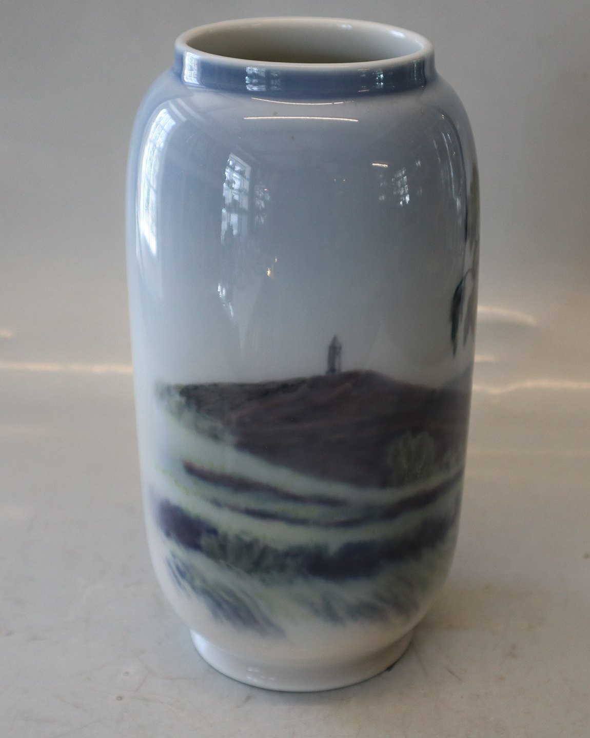 2889-107 Kgl. Vase med tårnet "Himmelbjerget" Silkeborg 21 cm Kongelig Dansk Porcelæn